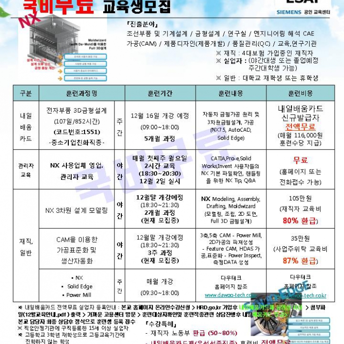 - 실업자계좌제 카드를 발급받으신 분(노동부전액지원O)