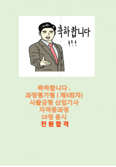 공지 과정평가형 사출금형 산업기사 전원합격 축하 축하 합니다.