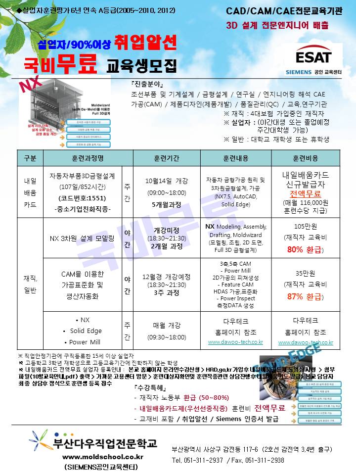 [실업자계좌제]전액무료 5개월 자동차부품 3D금형설계 10/14 개강