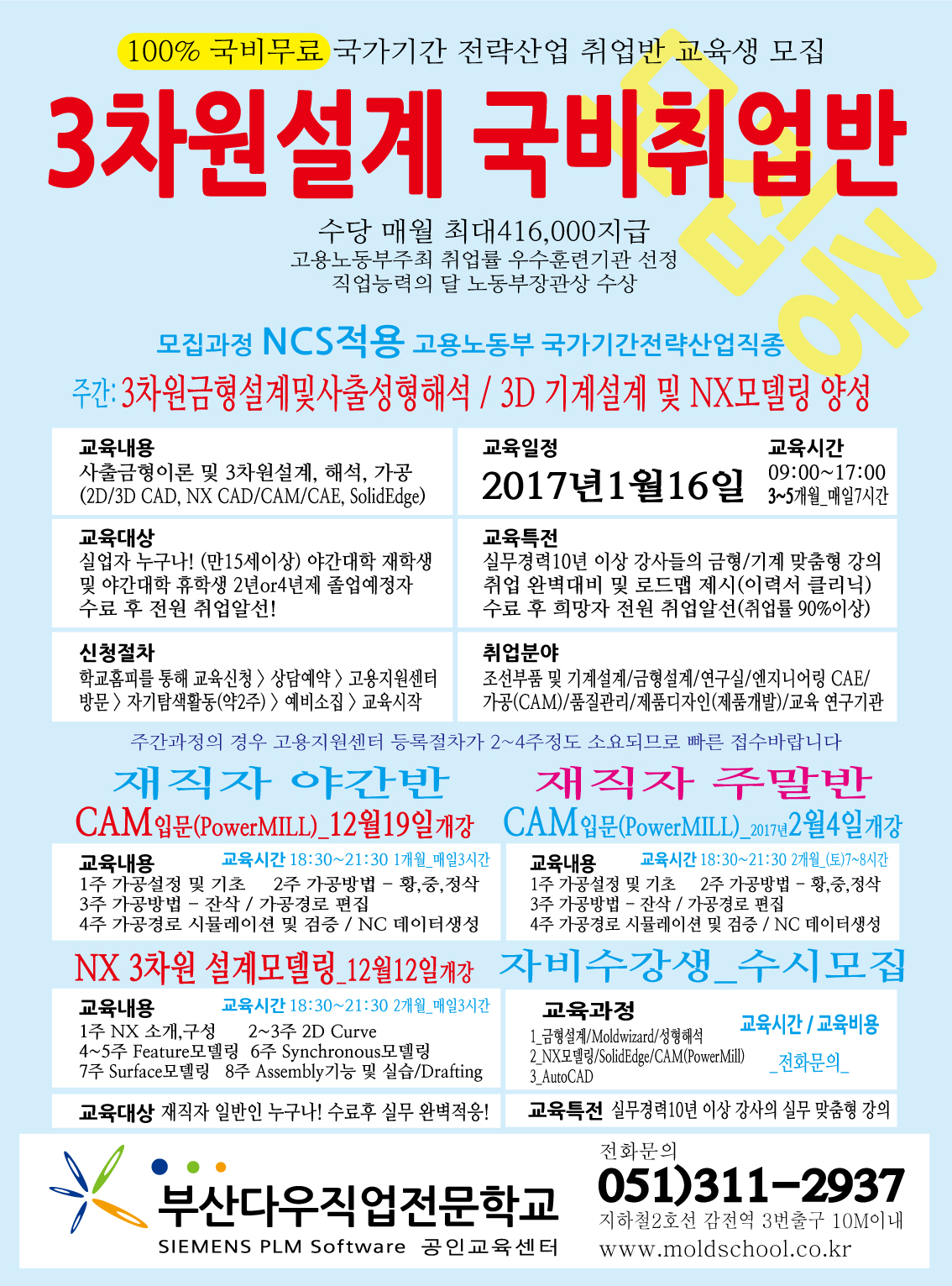 NCS과정 국가기간 국비무료 교육생모집_2017년1월16일 개강