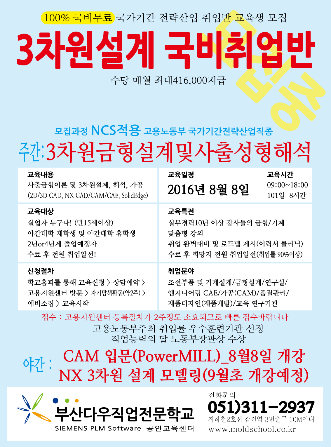 NCS과정 국가기간 국비무료 교육생모집_2016년 8월 8일 개강